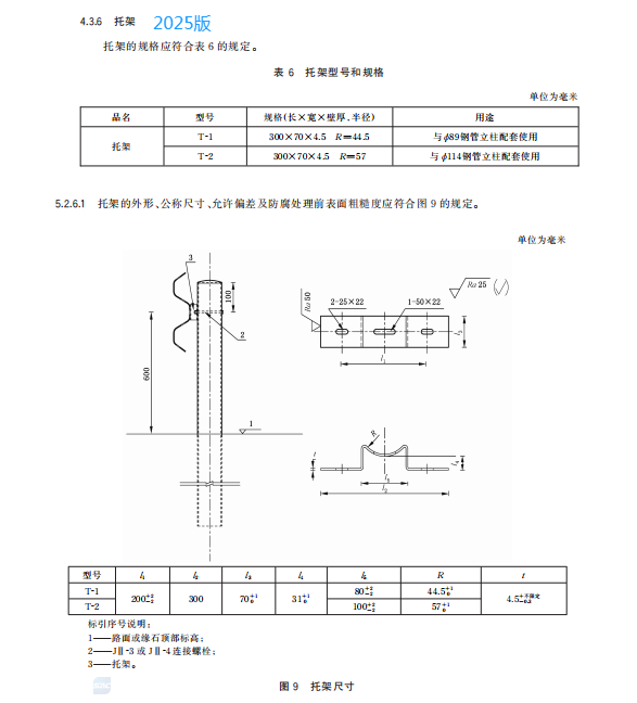 j) 增加了 2.0 mm 厚和 2.5 mm 厚兩波形梁板的最小厚度和平均厚度要求、中部連接螺孔數量應根據鋼管立柱間距設置的要求(見 5.2.1.1、5.2.1.2);