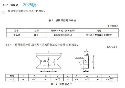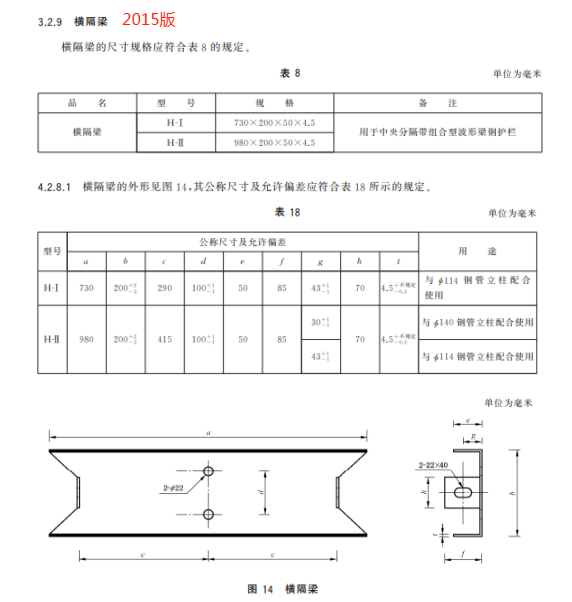 h) 更 改 了 橫 隔 梁 的 用 途 、規 格 和 公 稱 尺 寸 及 允 許 偏 差(見 4.3.7、5.2.7.1,2015 年 版 的 3.2.9、4.2.8.1);