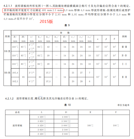l) 刪除了變截面兩波形梁板的外形圖及加工要求(見 2015 年版的圖 3、圖 4 和 4.4.2);