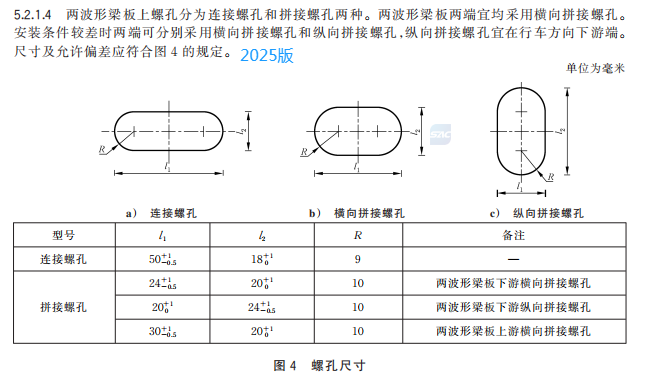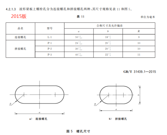 m) 更改了兩波形梁板螺孔規格(見 5.2.1.4,2015 年版的 4.2.1.3);