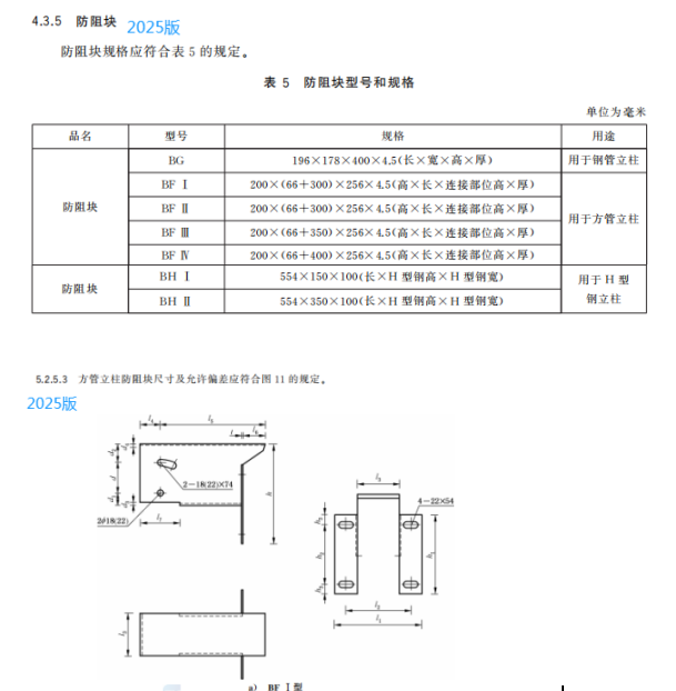 f) 更改了鋼管立柱防阻塊的用途、規(guī)格、尺寸和允許公差(見4.3.5、5.2.5.1、5.2.5.2,2015年版的3.3.5、4.2.5.1、4.2.5.2);