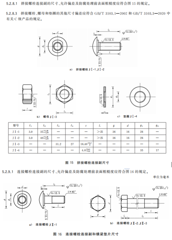 j) 更改了拼接螺栓連接副和連接螺栓連接副的用途、規(guī)格、公稱尺寸及允許偏差(見4.3.8、4.3.9、5.2.8.1、5.2.8.3、5.2.9.1和5.2.9.3,2015年版的3.3.8、3.3.9、4.2.8.1和4.2.9.1);