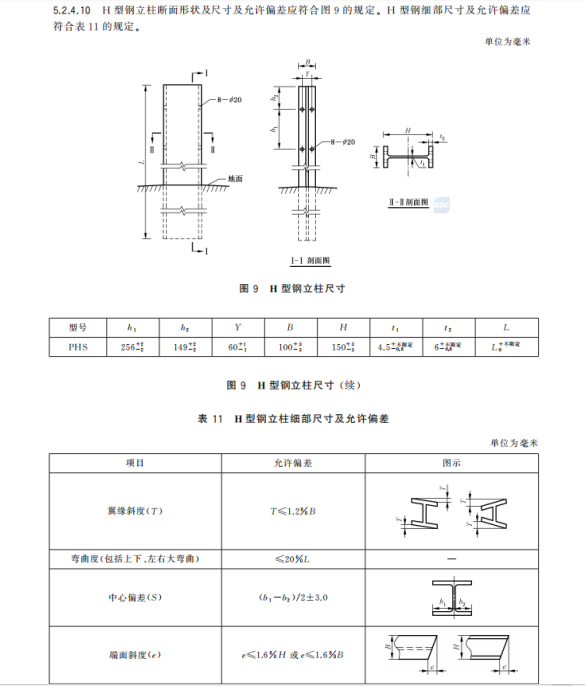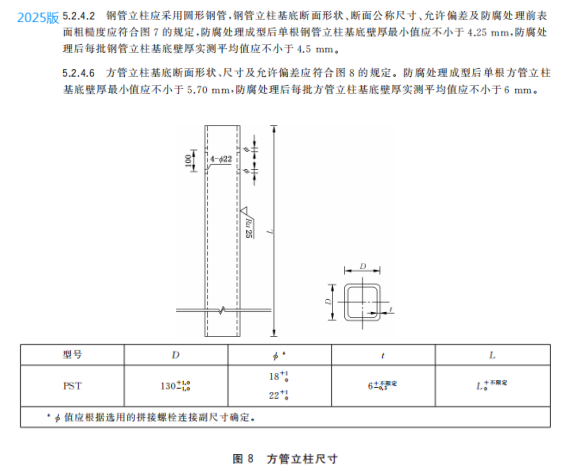 n) 更改了鋼管立柱、方管立柱和 H 型鋼立柱的尺寸要求(見5.2.4.2、5.2.4.6、5.2.4.10,2015年版4.2.4.2、4.2.4.6和4.2.4.10);