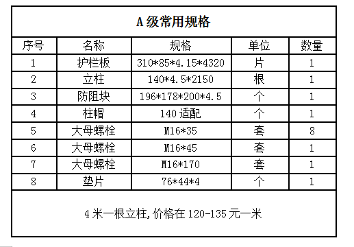 其實是以顧客要求的規格型號來決定的!用在什么路上?兩波板還是三波板?柱子要多高?板材要多厚?鋅層要多厚?是否要噴塑?要國標還是非標?具體以您的圖紙和業主要求為準。參數不同價格不同;另外還要計算出運費,安裝費,以及其他費用,是否開稅票,綜合再平均才能得到準確價格!并且鋼材原料價格浮動每天都有變化,以當日價格為準!